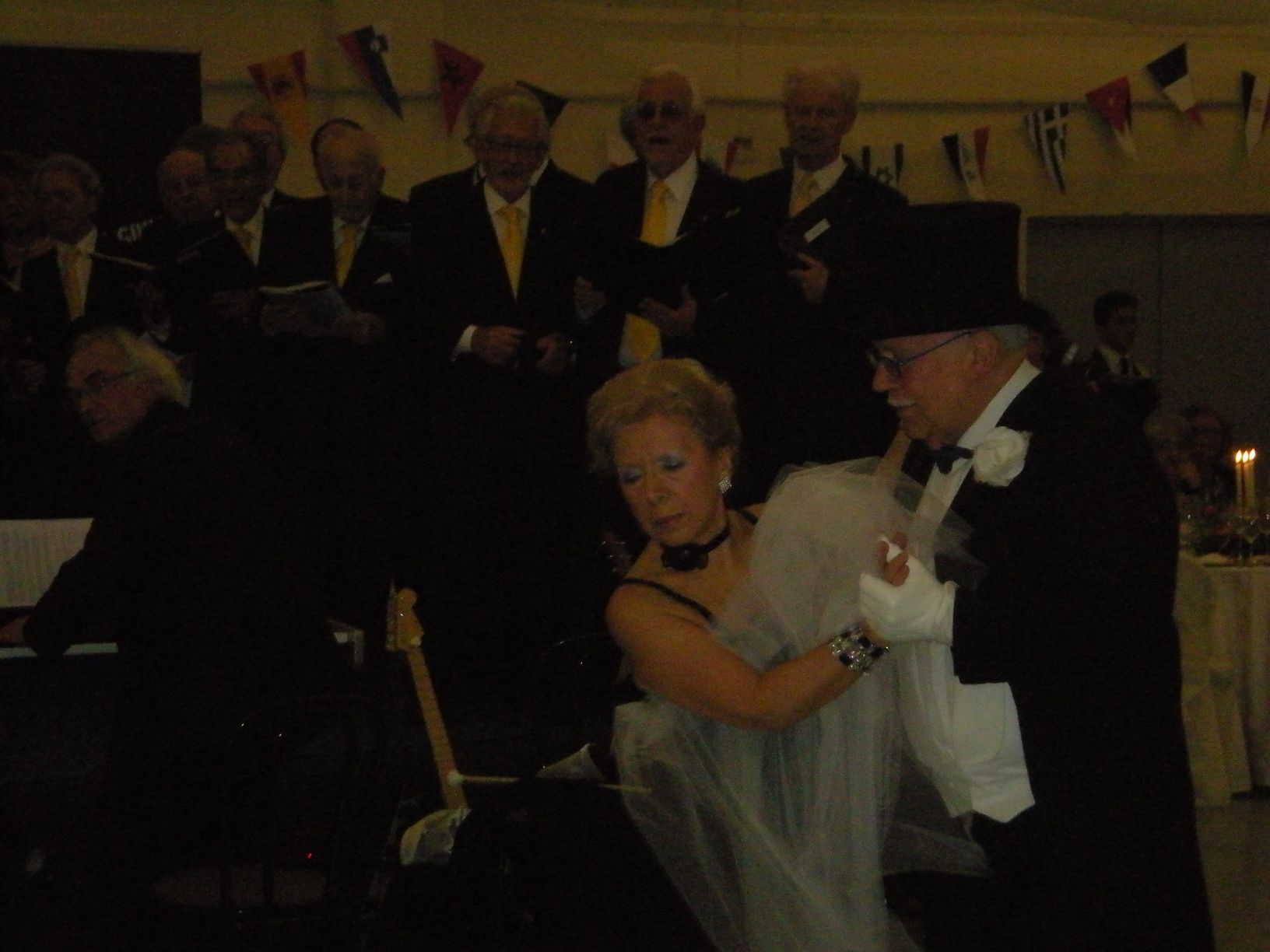La cena è stata preceduta dall’esibizione del Coro dei Lions Singers diretto dal Maestro Zannerini, che conta tra i partecipanti i nostri amici Rosolini, Cinco, Gerdina e Ferretti. Il coro, fondato nel 2004, vanta una intensa attività con numerose esibizioni a scopo benefico, e contribuisce a diffondere la conoscenza dei Lions tra la gente. Bravissimi Giorgio Sardot e Signora che hanno accompagnato con eleganti passi di danza l’indimenticabile “Vecchio Frack” di Modugno. A metà cena una pausa con una serie di balli da parte di giovani allievi di scuole di danza, che si sono esibiti nei diversi stili, bravi ed applauditissimi. Chiude la piacevole serata il saluto del Presidente Scruggs, ed è ormai mezzanotte.