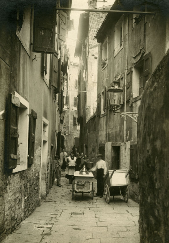 Nell’inverno tra il 1925-1926 egli viene incaricato di realizzare un reportage fotografico di “città vecchia”. Questo nucleo di fotografie, che nel suo complesso conta ben 363 positivi, documenta in maniera capillare la zona antica della città, prossima ad essere sostanzialmente modificata dai piani urbanistici del 1925-1939, che alterarono in maniera definitiva la fisionomia di quelle zone. Attraverso un’attenta ricostruzione, nella quale verranno utilizzate per la maggior parte le immagini appartenenti a questo nucleo fotografico, verrà ricomposto un itinerario attraverso i luoghi e la storia. L’attenzione sarà richiamata in particolar modo sulla zona che subì le maggiori trasformazioni, l’antica zona di Riborgo, dove era ben inserita e attiva la comunità ebraica triestina.