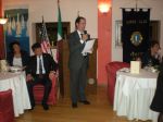 Il Governatore, nel suo discorso ha ribadito che il principale obiettivo del lionismo è operare per il miglioramento della comunità nella quale viviamo. I Lions realizzano “service” in favore della collettività. Il motto scelto dal governatore “Insieme per un mondo migliore”, richiama i club a unire le forze così da sviluppare una capacità di intervento sempre maggiore ed efficace. I mezzi su cui contare per realizzare i service sono soprattutto i soci Lions con le loro competenze e capacità in svariati campi e la loro profonda conoscenza dell’ambiente in cui operano. I soci sono i sensori sul territorio, rilevano e riportano le esigenze, valutando le possibilità di intervento da parte dei Club Lions e danno il loro apporto costruttivo. Molti e di grande rilievo i service realizzati e su cui si continuerà ad operare. Tra gli altri: le vaccinazioni contro il morbillo dei bambini nei paesi svantaggiati, la diffusione nelle scuole della cultura della prevenzione dei tumori (Progetto Martina), le nuove povertà, la violenza sui minori, i cani guida per i cechi, il sostegno del microcredito per incentivare le iniziative di piccoli imprenditori, la la raccolta di occhiali usati, la banca del tempo. In conclusione è un invito a lavorare tutti insieme a favore della comunità sulla base dei nostri scopi, nella speranza di costruire un mondo migliore in cui vivere.